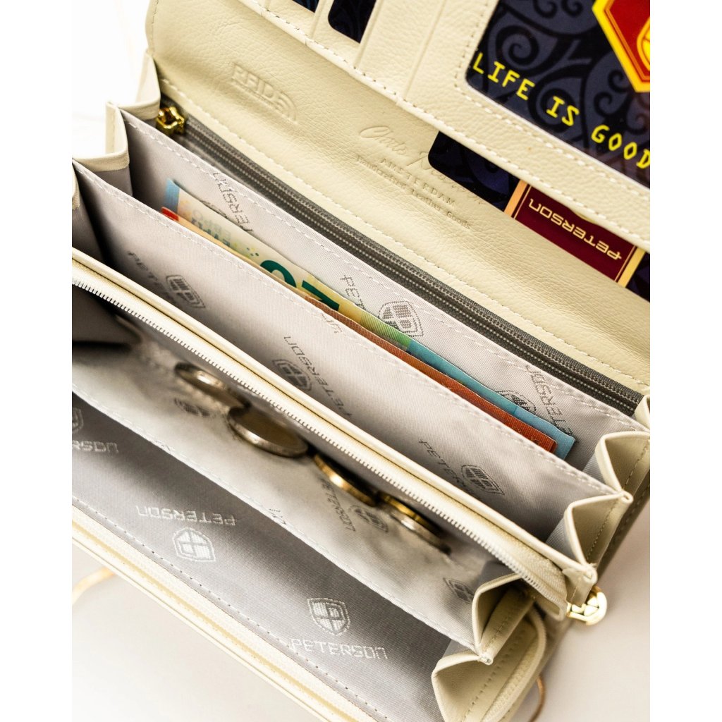 Pánské peněženky značky Peterson mají navíc velmi neobvyklé plechové krabičky, ideální jako dárek. Každá dámská peněženka značky Peterson je zabalena v pevné papírové krabičce s potiskem loga výrobce. V kvalitně zpracovaných peněženkách vám propracované kapsičky umožní prakticky oddělovat bankovky, karty a doklady a tím velmi zjednoduší každodenní užívání.