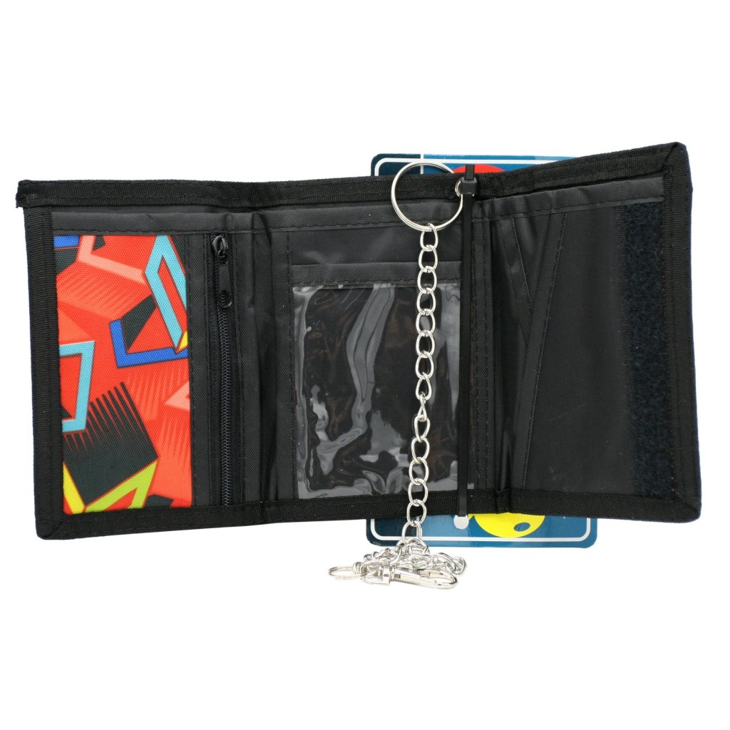 Nejen ke sportu, ale také pro každodenní používání je vhodná sportovní peněženka malá se zavíráním na suchý zip. Na zadní straně peněženky kromě kapsy na karty také velká kapsa na zip, přístupná bez nutnosti otevřít celou peněženku. Uvnitř peněženky je velká kapsa na bankovky. Do peněženky dáte pohodlně několik karet do kapes na boku peněženky a určitě najdete využití i pro průhlednou kapsu. Mincovník je samozřejmostí a zavírá se zipem. V peněžence je také řetízek s karabinou, který lze sundat. Každá peněženka má trošku jiný motiv. Materiál peněženky je 100% polyester.