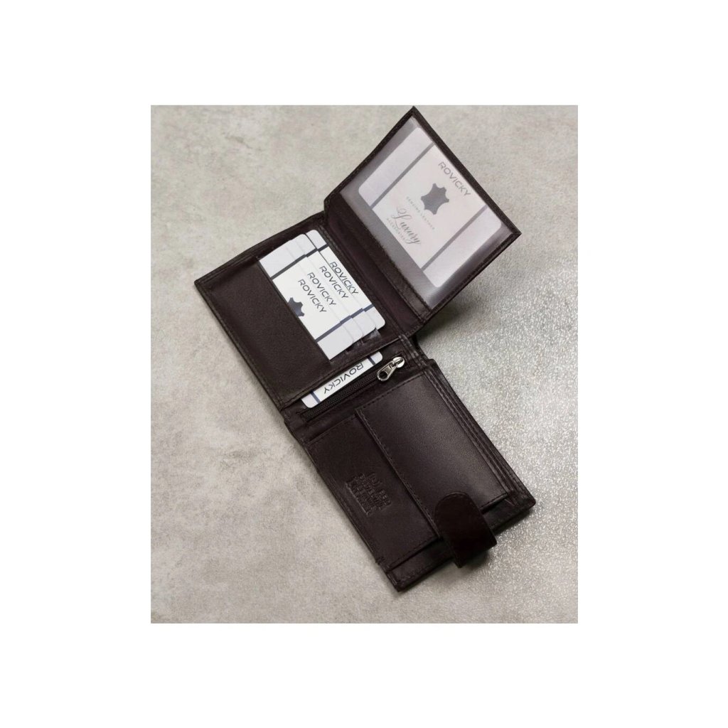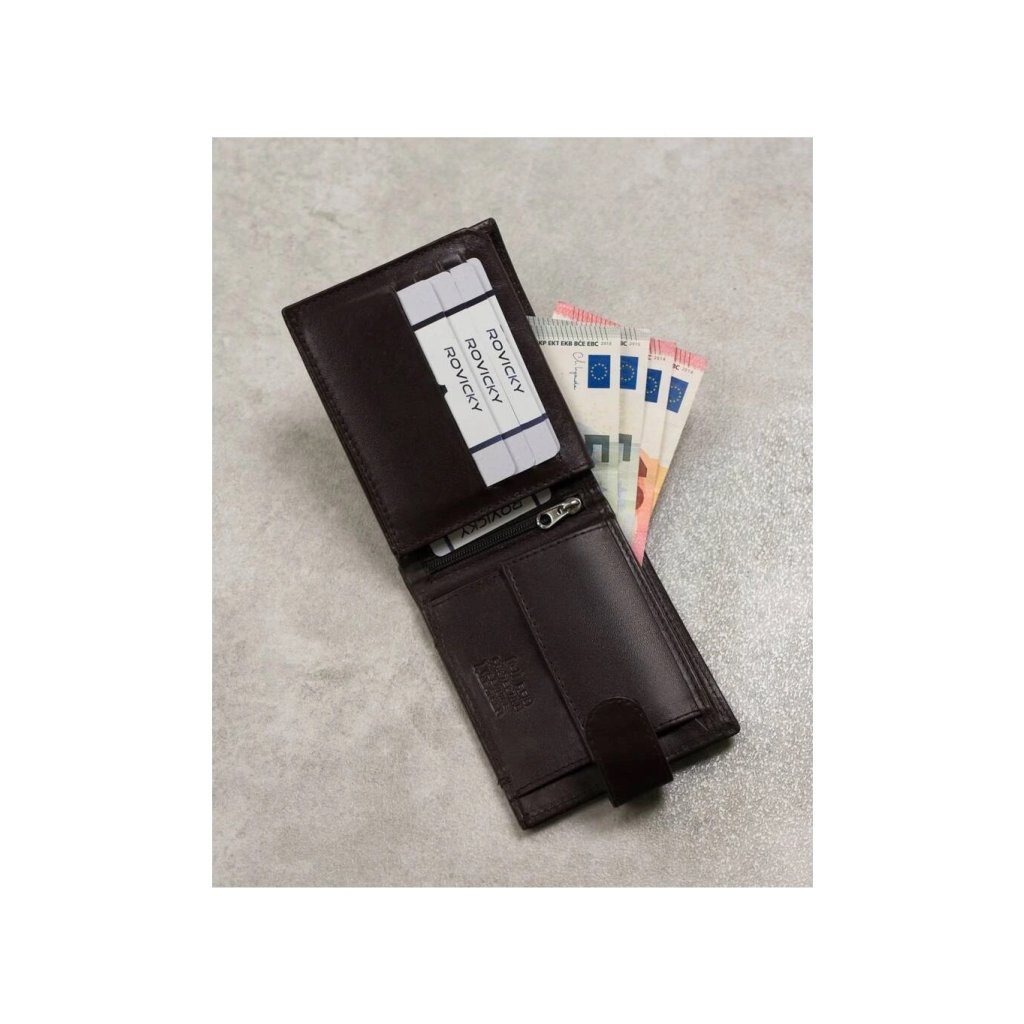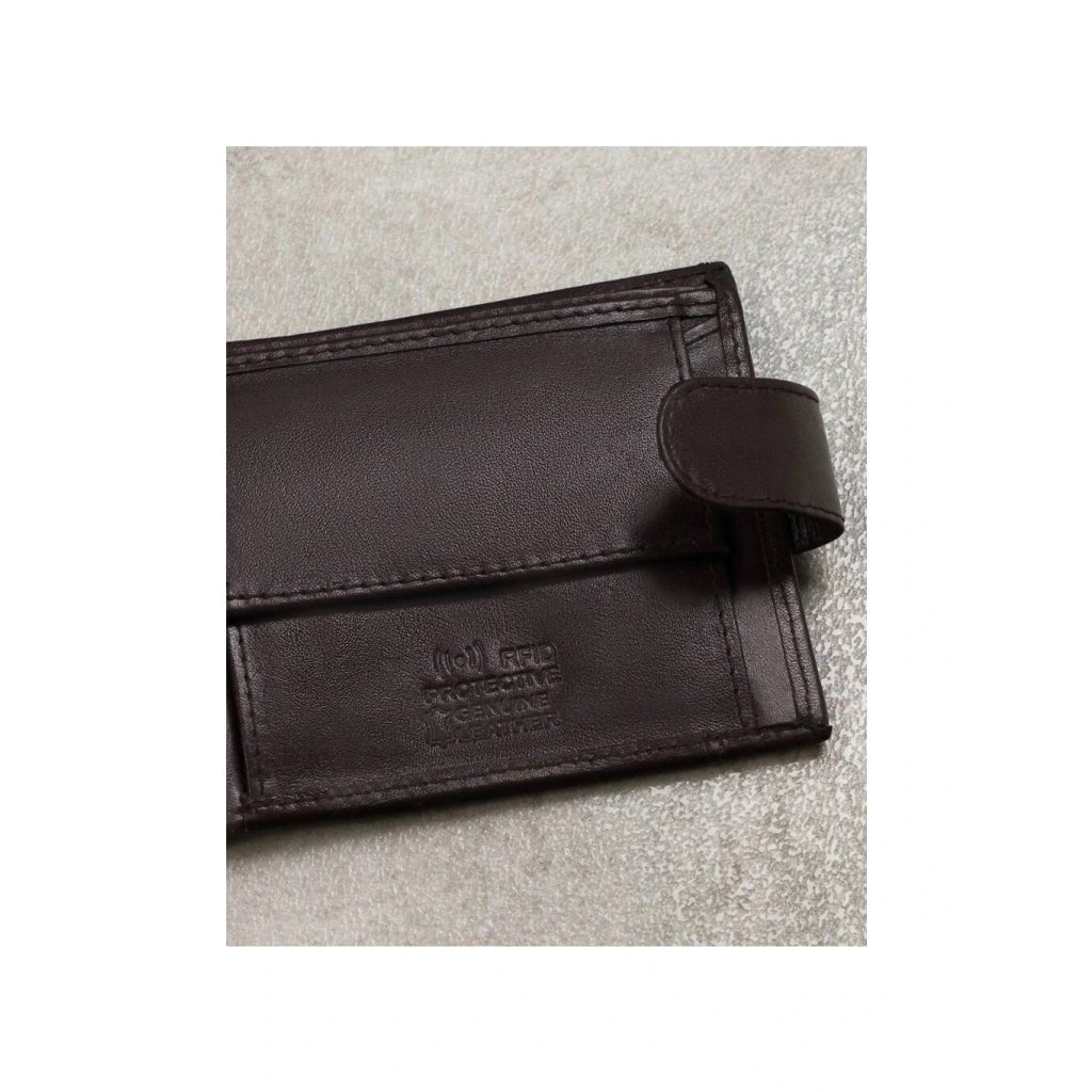 Hnědá pánská kožená peněženka s přezkou je vyrobena z pravé kůže hnědé barvy. Peněženka je velká, orientována na šířku, nemá zavírání na zip a mincovník peněženky je uvnitř. Peněženka má kapsy na karty a je vybavena ochranou proti nechtěnému čtení platebních karet technologií RFID. Charakteristické vlastnosti peněženky: na karty, nejprodávanější, wild peněženka.