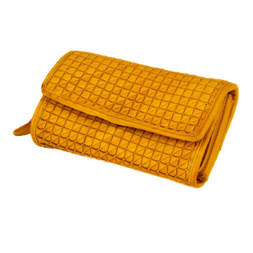 Kožená luxusní peněženka barevná je vyrobena z pravé kůže žluté barvy. Peněženka je velká, orientována na šířku, nemá zavírání na zip a mincovník peněženky je uvnitř. Peněženka má kapsy na karty a je vybavena ochranou proti nechtěnému čtení platebních karet technologií RFID. Charakteristické vlastnosti peněženky: designová, luxusní, větší.