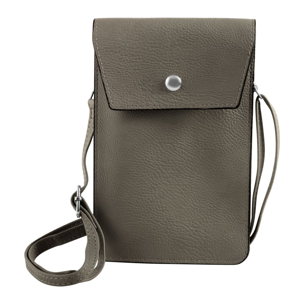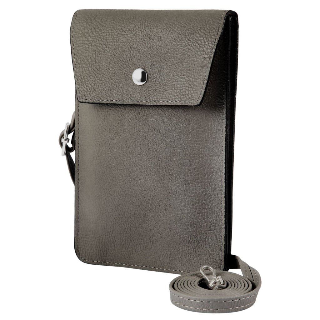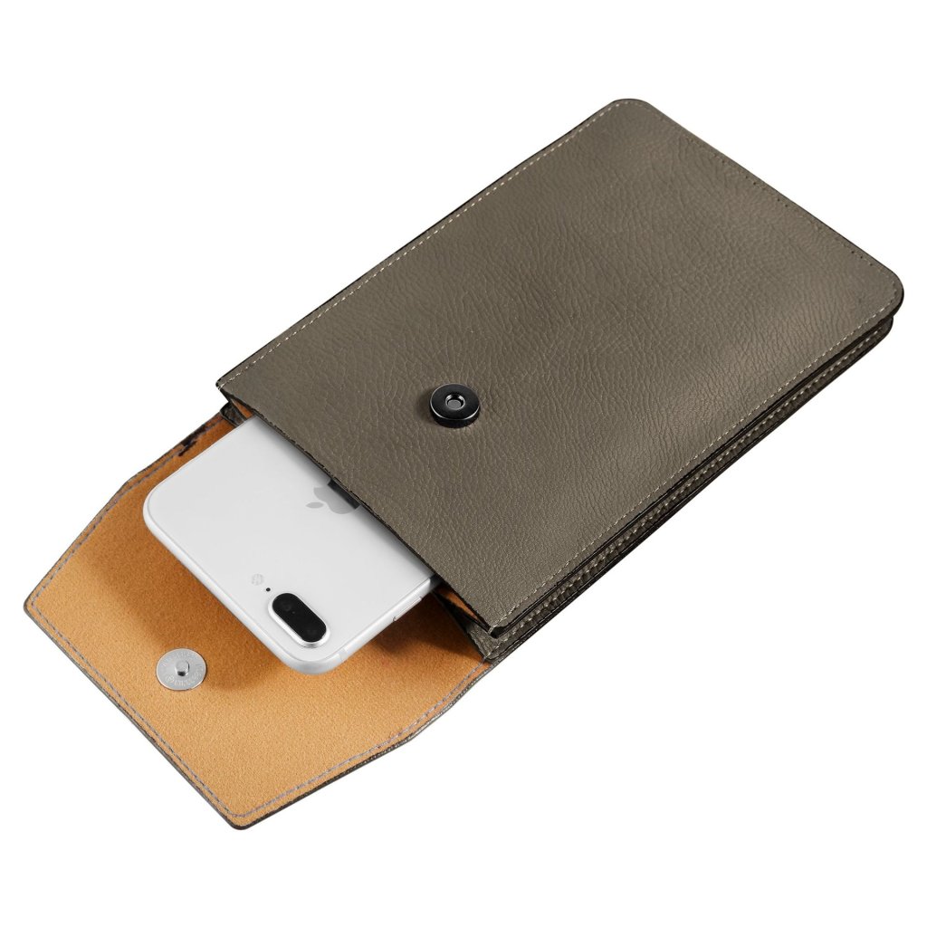 Kožené pouzdro na krk na doklady je vyrobeno z umělé kůže šedé barvy. Pouzdro má koženou šňůrku s nastavitelnou délkou až 125 cm. Na konci jsou karabinky a tak ji lze odejmout úplně. Pouzdro má jednu velkou kapsu která se uzavírá magnet přes celé pouzdro, která je rozdělena do dvou přihrádek, které lze snadno otevírat a zavírat pomocí patentního knoflíku. Nabízí dostatek prostoru pro uložení všeho, co potřebujete, a je vhodná i pro velké telefony, jako je iPhone 12, iPhone 12 Pro a iPhone 12 Pro Max.