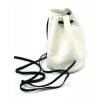 Kožený měšec ručně sešívaný z bílé kůže s kulatým dnem. Zavírání měšce je vyřešeno koženým řemínkem. Kožený měšec lze použít jako peněženku na drobné mince nebo pouzdro na šperky, kameny, korálky. Když naplníte měšec mincemi máte originální dárek.