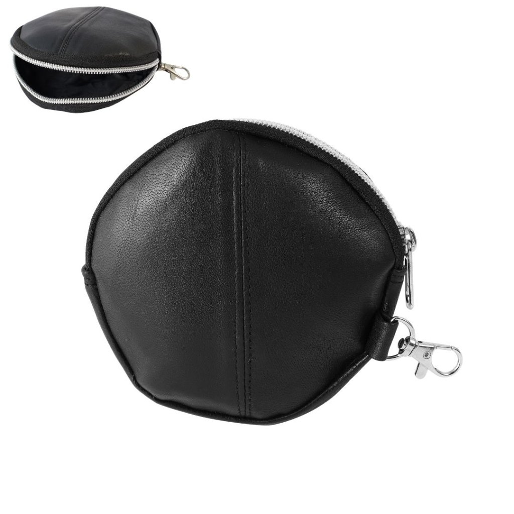 Praktická kožená kapsička na peníze neboli mincovník. Pokud nosíte pár drobných a pár bankovek je toto ideální peněženka. Peněženka má pevné uzavírání zipem aby se vám obsah nevysypal. Kapsička na mince je vyrobena z velmi jemné pravé kůže černé barvy. má navíc karabinku, pomocí které lze peněženku připevnit na oblečení a tašku.