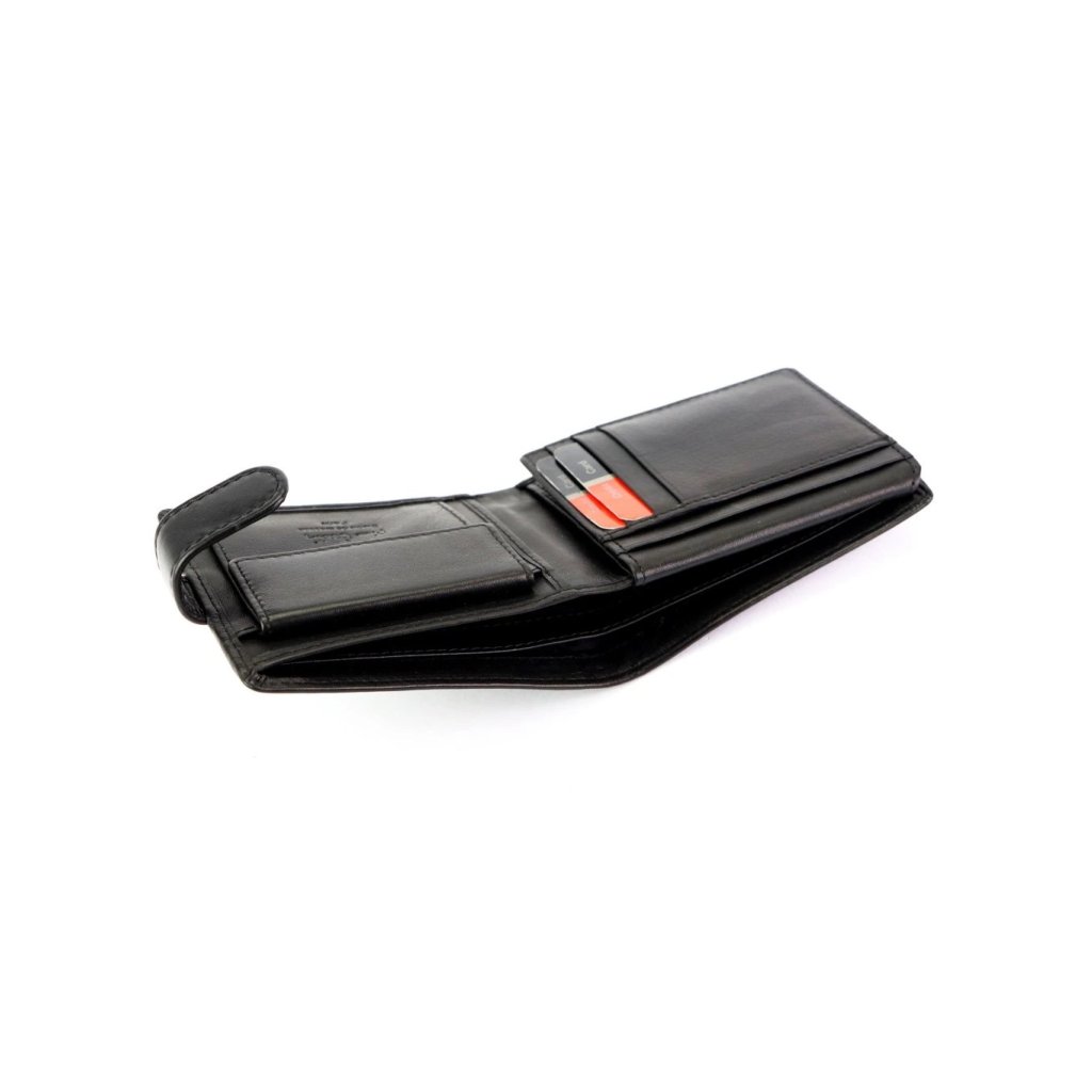 Pánská peněženka je vyrobena z pravé kůže černé barvy. Peněženka je orientována na šířku, mincovník peněženky je uvnitř. Peněženka má kapsy na karty. Charakteristické vlastnosti peněženky: luxusní, značková, větší.