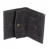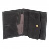 Pouzdro na karty, doklady, bankovky a malý technický průkaz. Pouzdro má z horní strany velkou kapsu na bankovky. Na zadní straně je další kapsa na kartu přístupná bez nutnosti otevřít peněženku. Pouzdro je vyrobené z kůže šedo černé barvy.